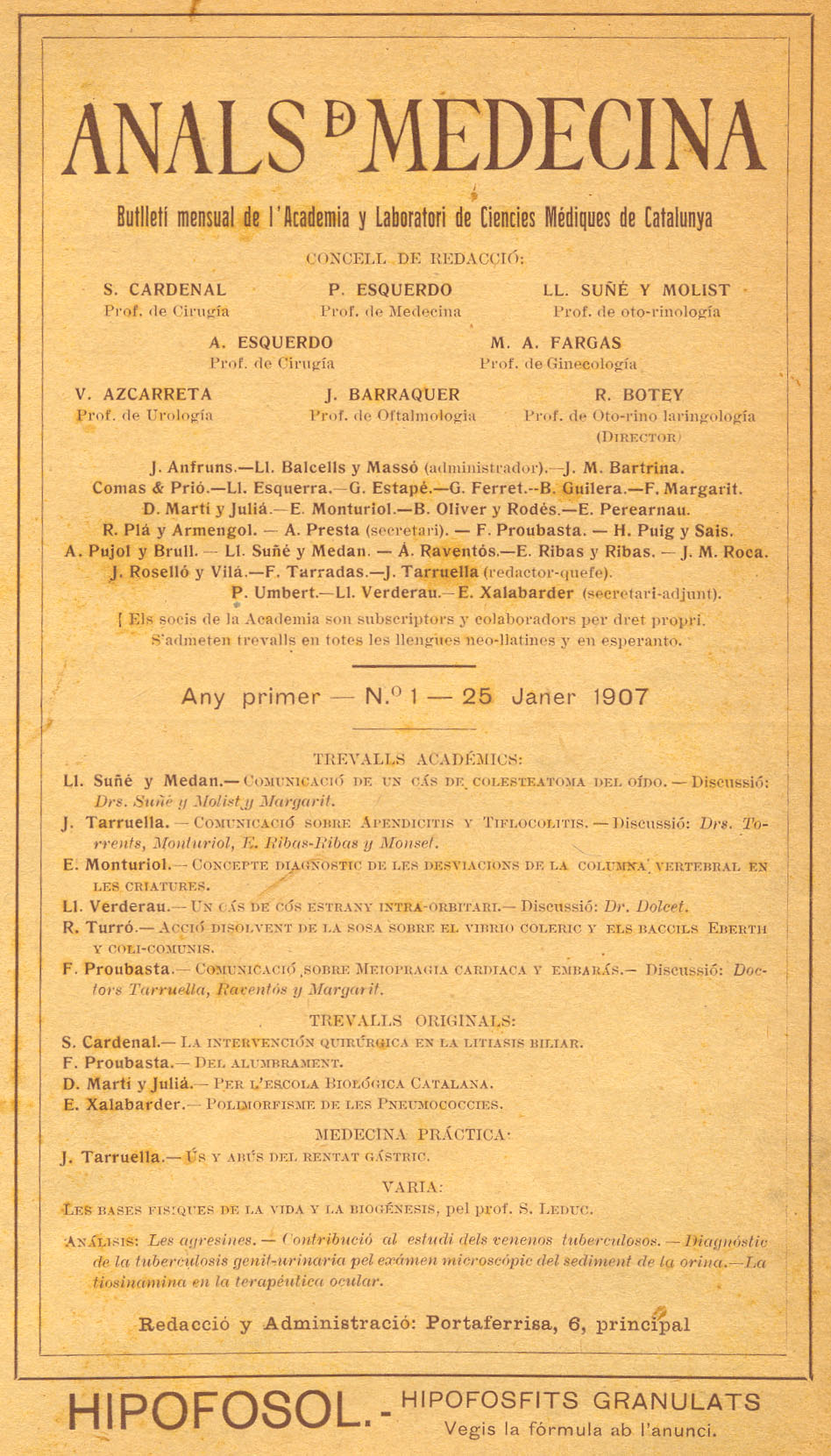 Es publica la revista en català Annals de Medicina com a butlletí mensual per als socis de l’Acadèmia.