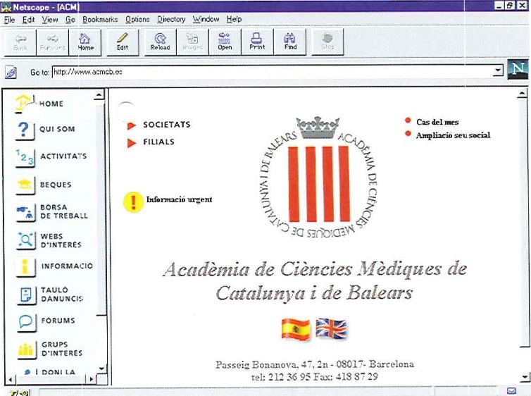 L’Acadèmia es fa visible a Internet amb la publicació de la seva web. Un projecte innovador i pioner sota la direcció del Prof. Josep Argemí i amb el suport de la Fundació Catalana per a la Recerca.